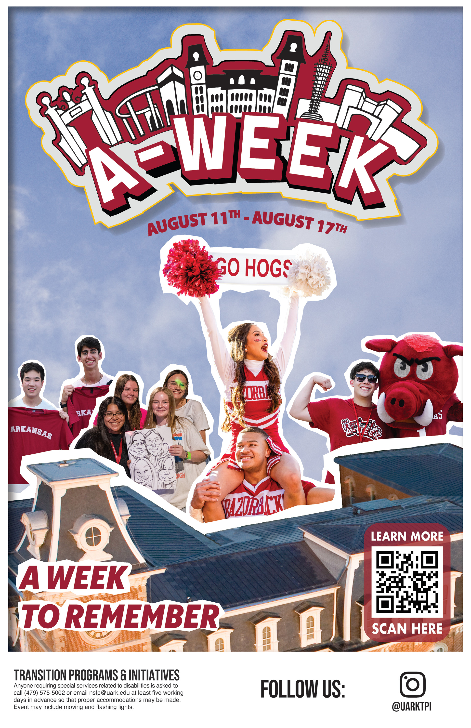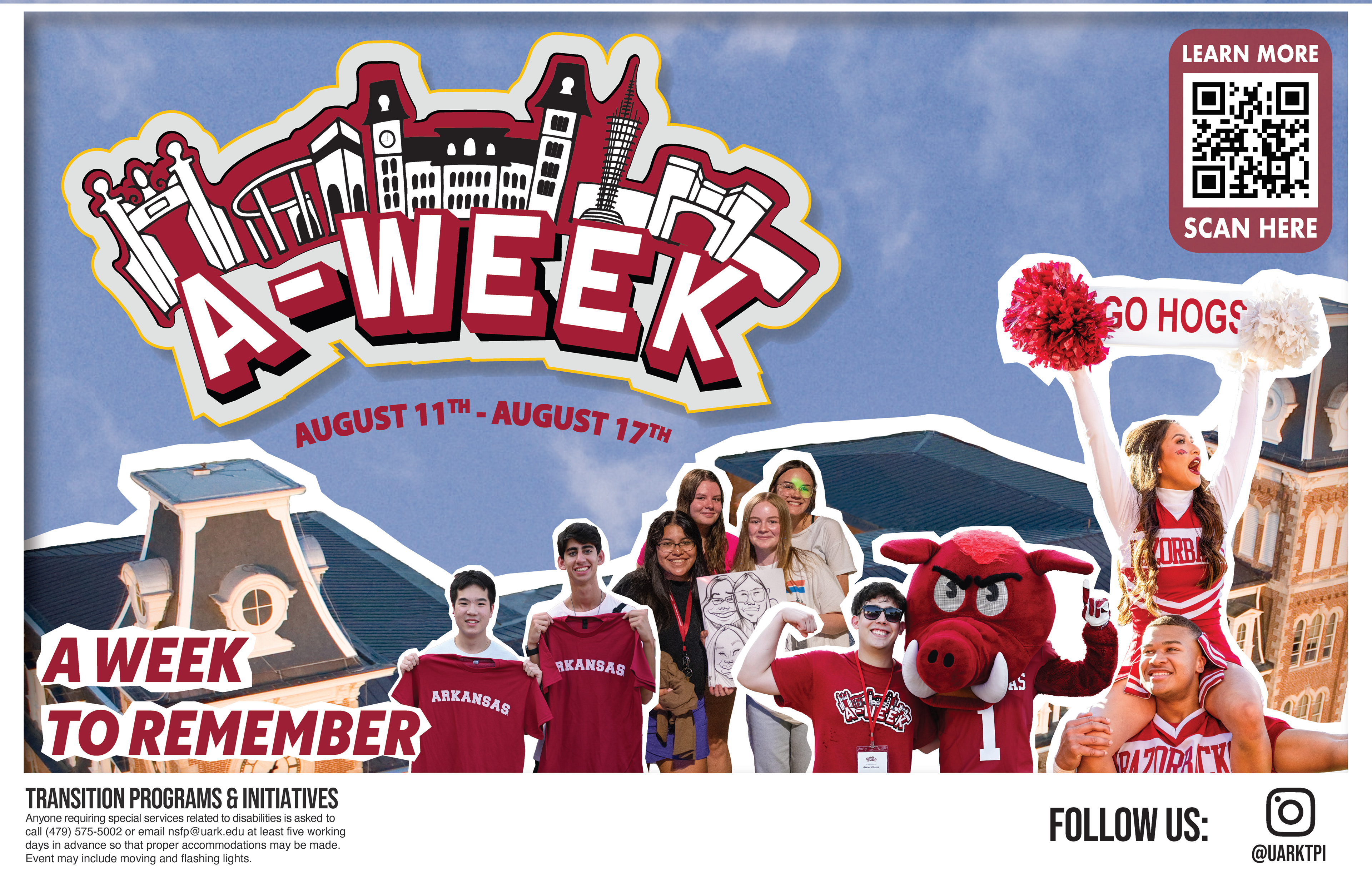As a Graphic Design Intern with Student Engagement & Outreach at the University of Arkansas, I design and manage marketing materials for a variety of campus programs, including banners, t-shirts, flyers, and digital graphics. The department supports First-Generation, New Student, and Parent & Family initiatives, allowing me to create work that connects with a wide range of audiences. I also assist with outside projects from other university groups, such as Registered Student Organizations (RSOs) and Transit, which reach out to our team for design support. In this role, I regularly use official university trademarked graphics, submit designs for approval, and ensure all materials follow brand standards. I’ve gained strong experience in professional printing practices, production preparation, and vendor coordination while working in a fast-paced environment with multiple deadlines and ongoing collaboration with campus leaders. Photos included in this page are still developing.